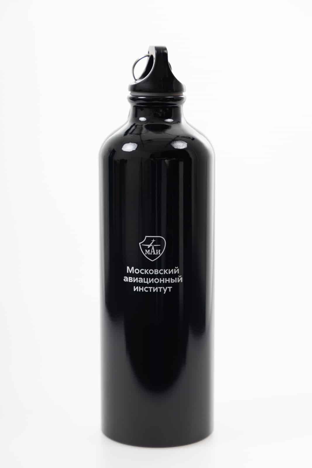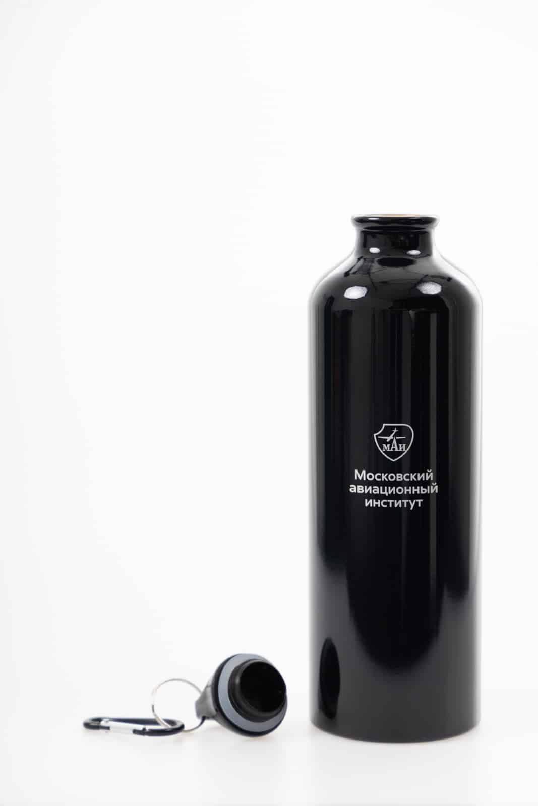 Спортивная бутылка для холодных напитков с логотипом МАИ подойдёт как для занятий спортом, так и для повседневного применения. Корпус в форме цилиндра объёмом 750 мл выполнен из алюминия.